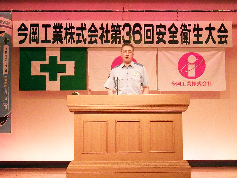 来賓として、出雲労働基準監督署署長及び出雲警察署交通課長を招き、安全と交通に関する社会情勢を話していただきました。